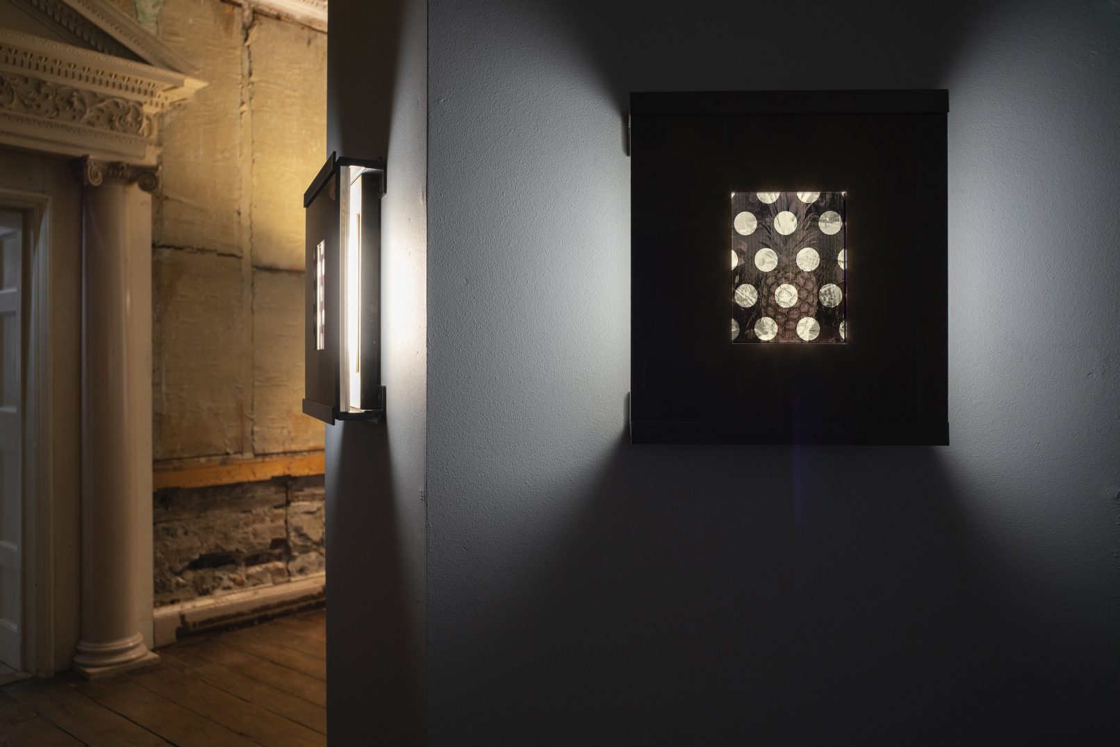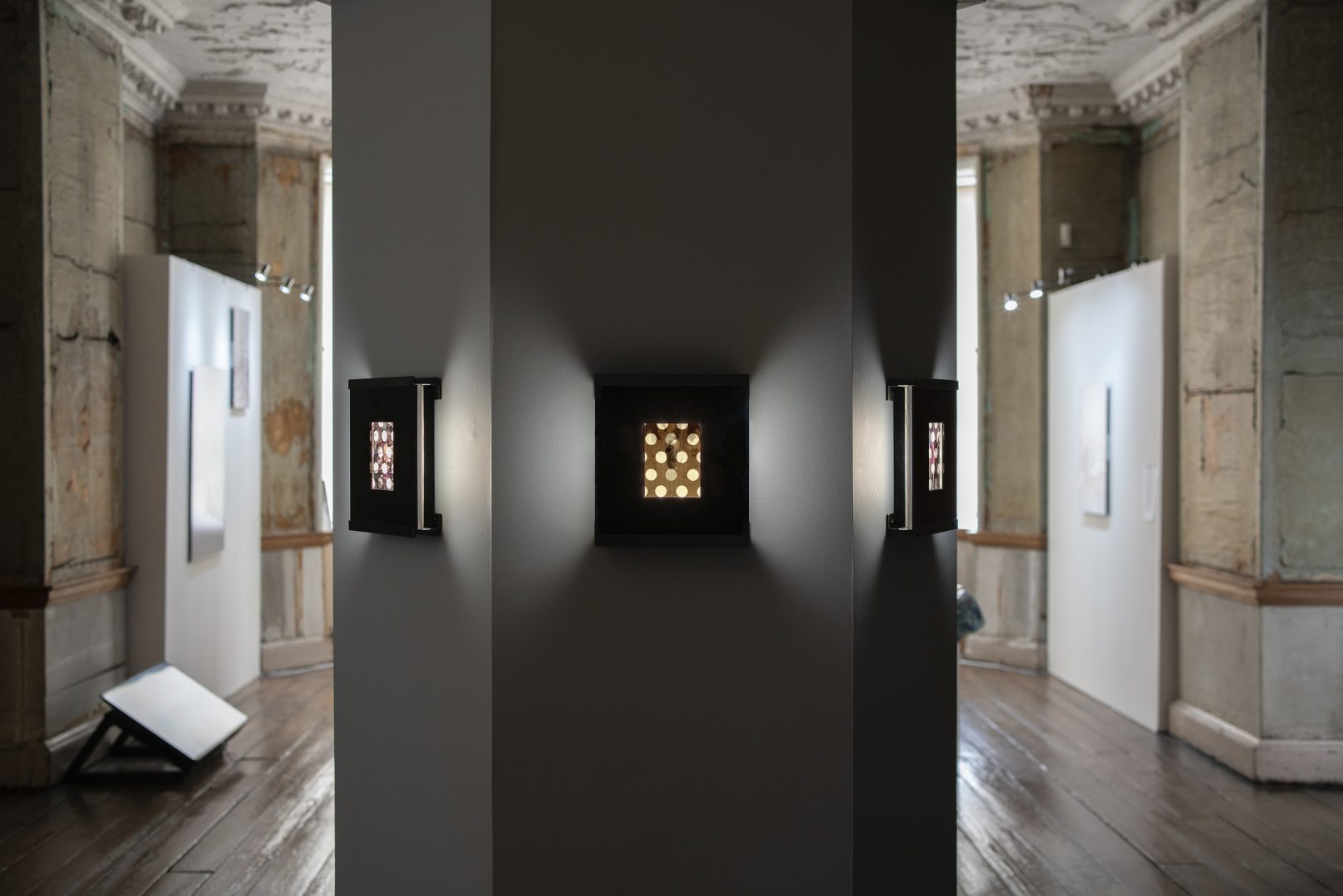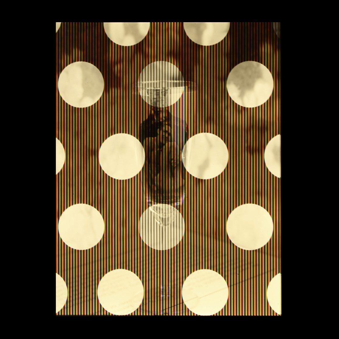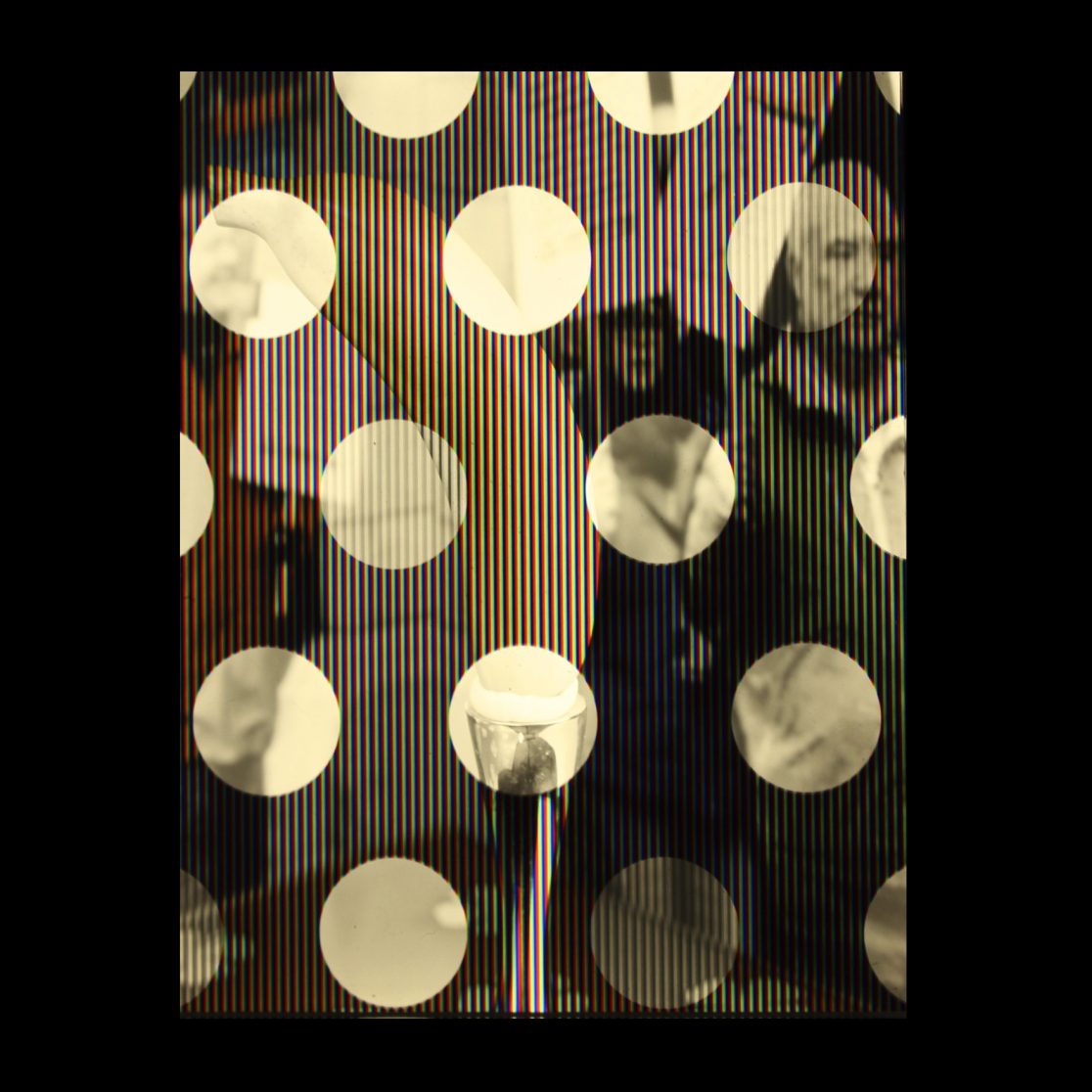 The technique uses the Joly screen photography, a method of colour photography developed in the 1890s by John Joly, a physics professor at Trinity College Dublin. It is an additive colour method, with a striped red, green and blue (RGB) colour screen placed in front of the film in-camera on exposure and then again on display. Colour information is recorded on black and white film and rendered as a colour image when the screen and film are put together. The film is processed into a positive and so what is displayed is the film that was in the camera, not a print or reproduction. Over the past year further experiments have added layers resulting in dense images of stripes, colour, and photographic fragments. This also allows for issues around post-appropriation by referencing existing images and locating or placing the process along and into a different historical context and timeline.