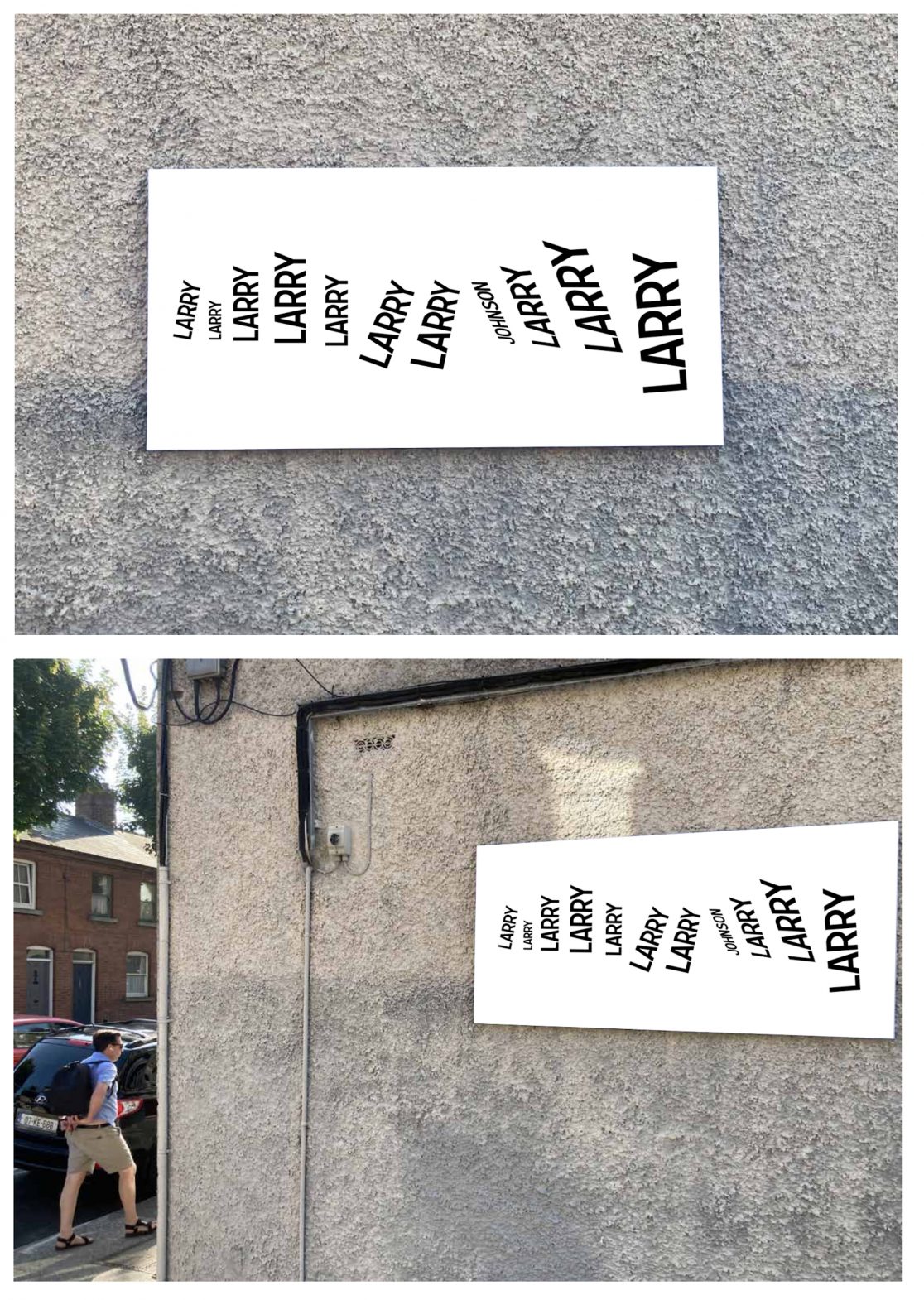 They are a bunch of different people, starting with a Lawerence and then a Johnson, two artists I much admire, the root of art as text and photography as text. The arrangement is signage, taken from road signs, using basic warp push and pull image editing to squeeze words in badly into shapes that are no longer there.