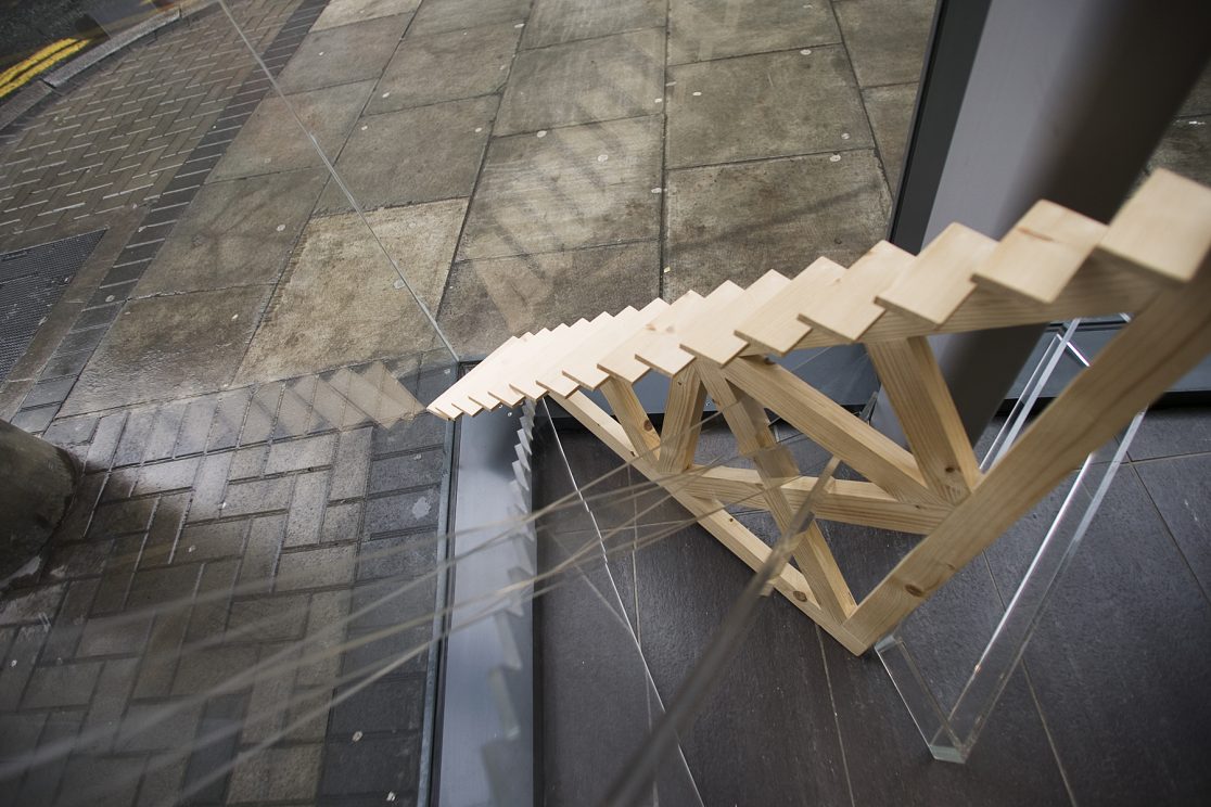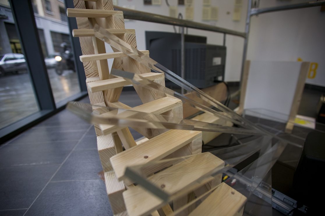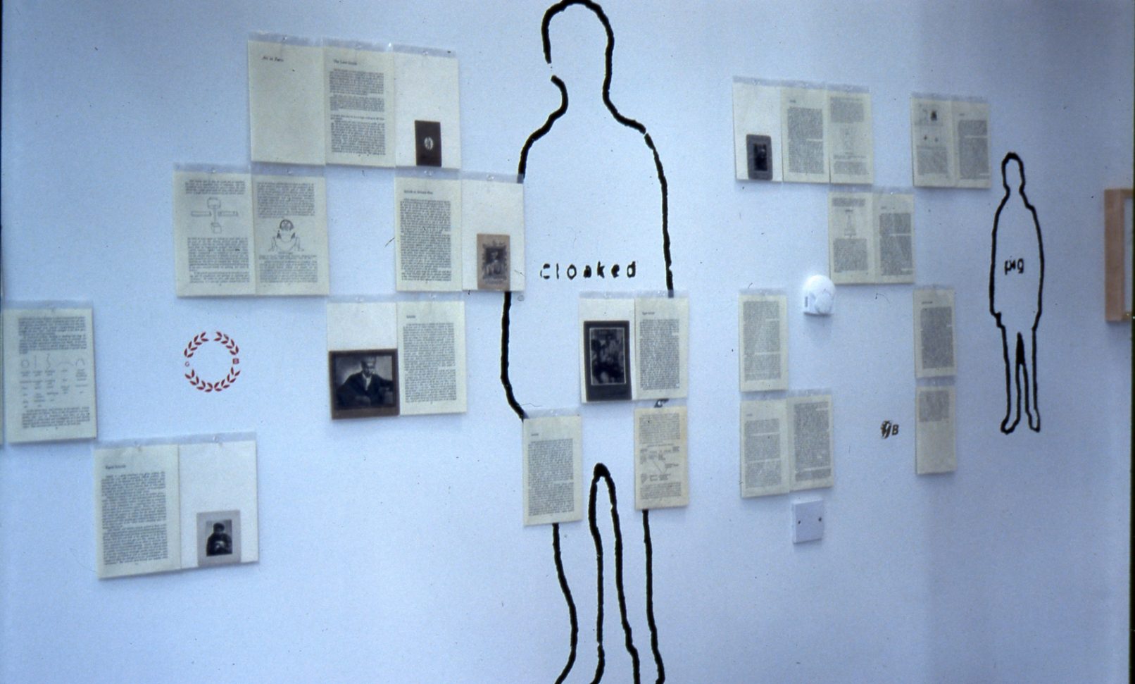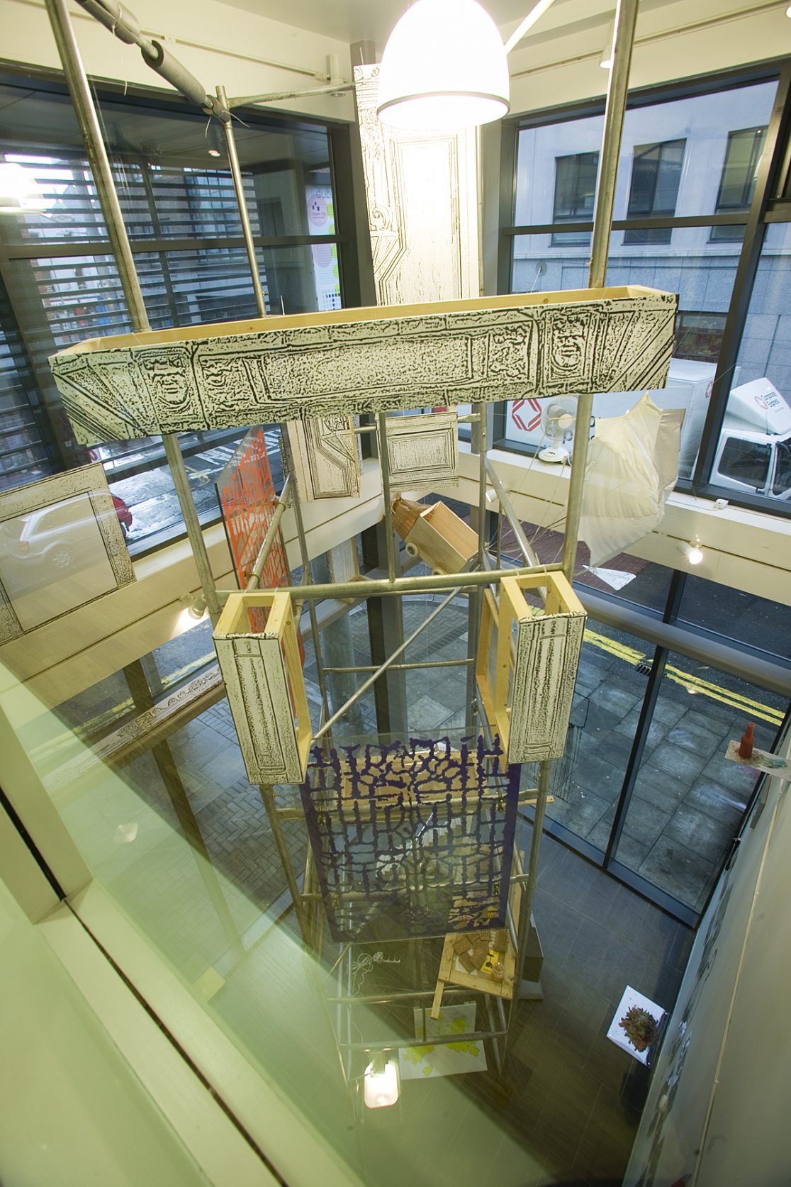 “Bio Bits” was the first presentation of a selection of works from the “Bio” book in Dublin together in one venue. Various works were attached to and around a scaffold tower installed in the space adjacent to the main entrance of The LAB. This offered a fresh context for these works which were all linked by an interest in biographical information.