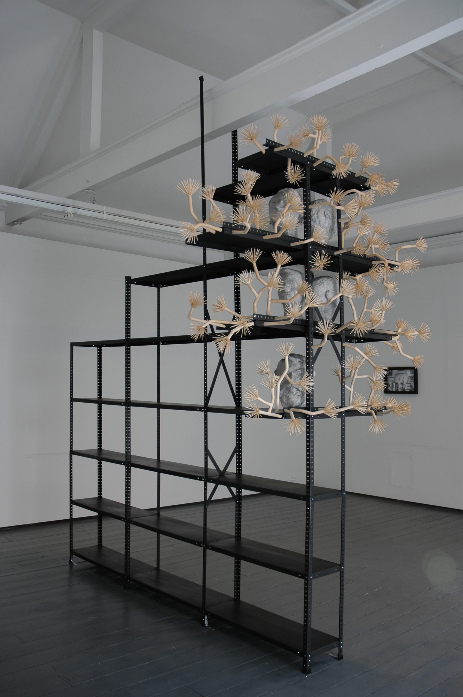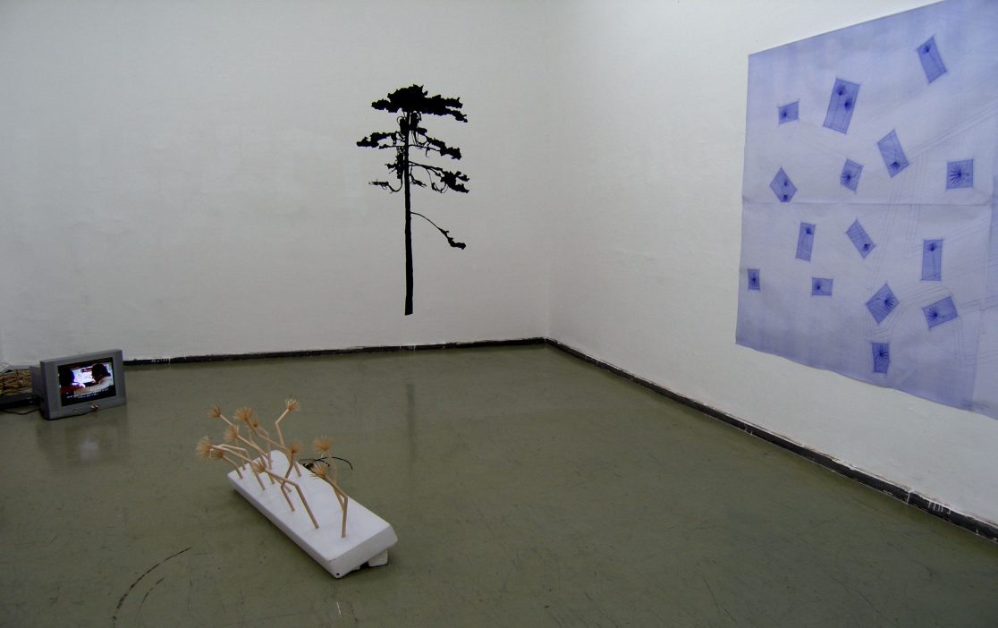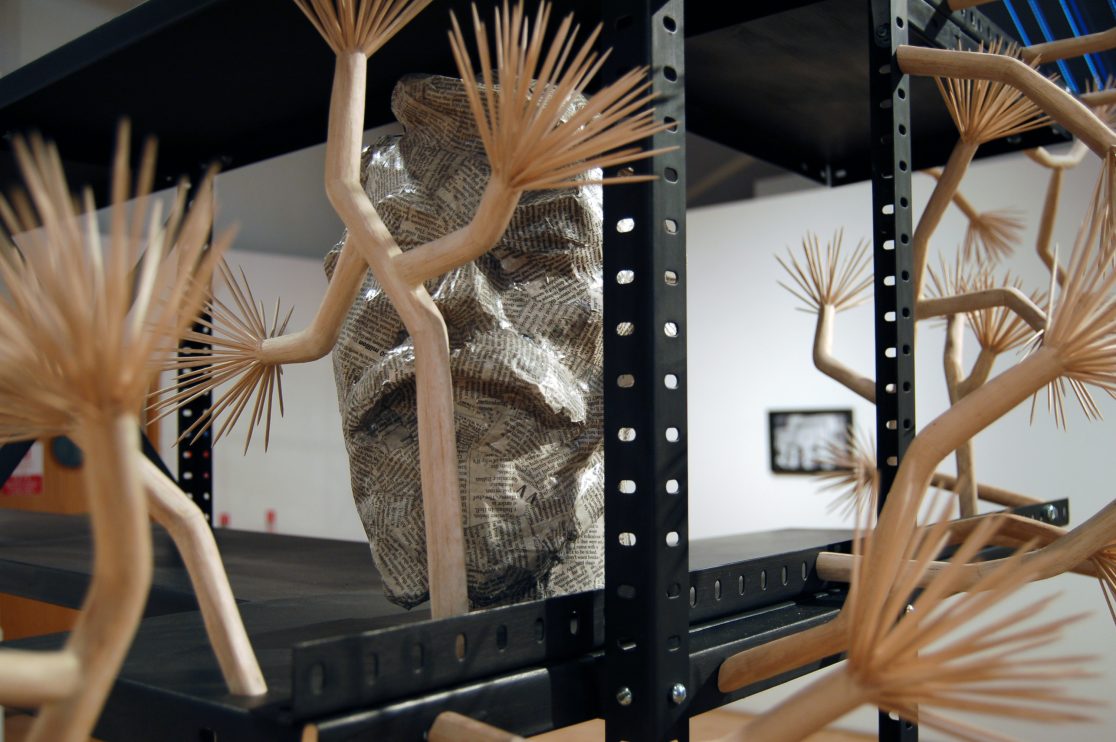 Three exhibitions where the the ‘blending-in’ twig method was developed – using pine clusters to hide various objects: a high performance exhaust; a Yugo car, a light fixture; and some forgotten busts from a county museum.