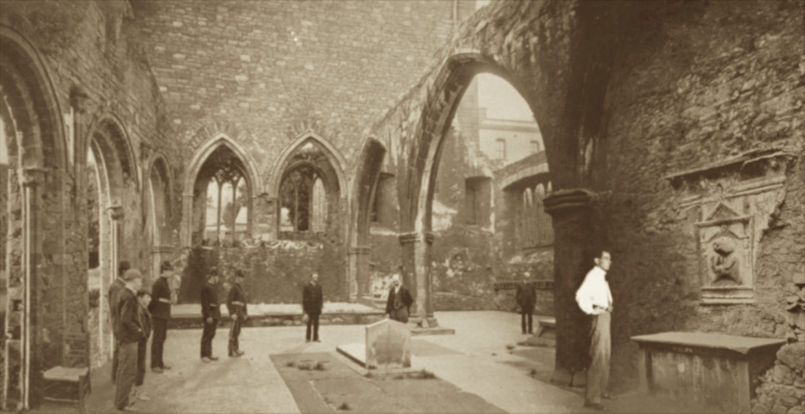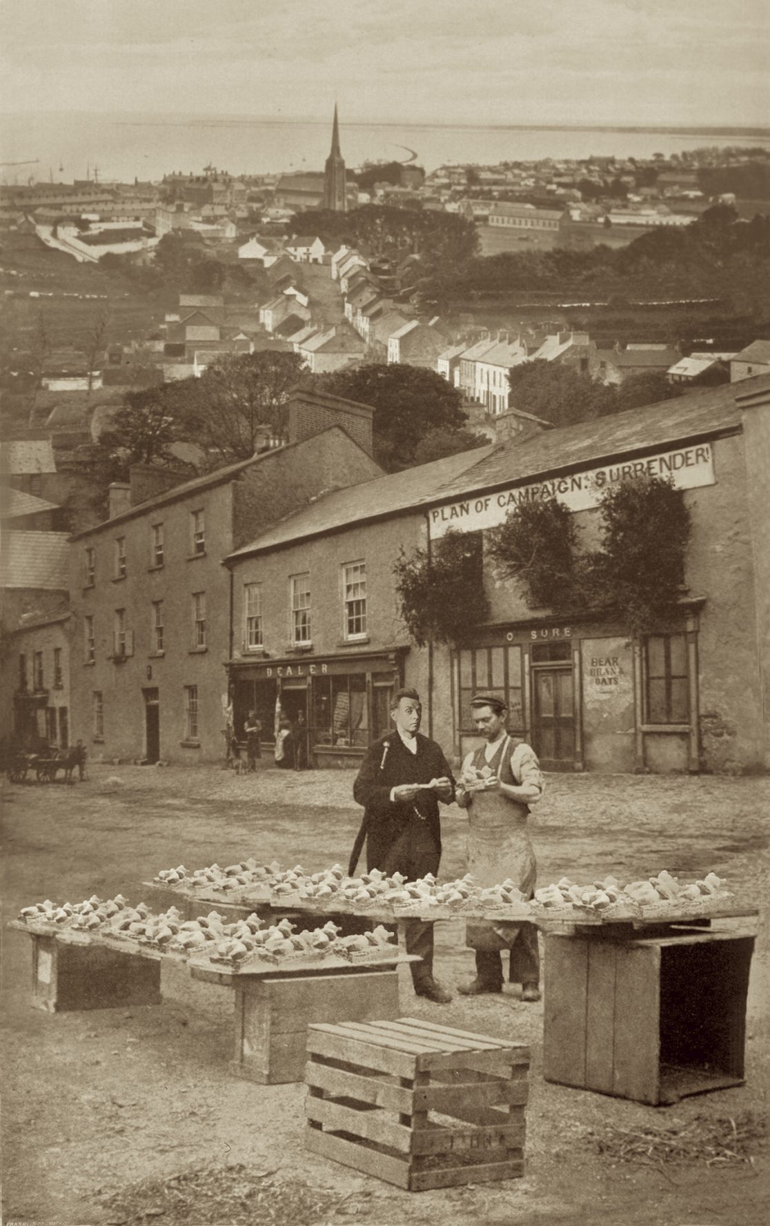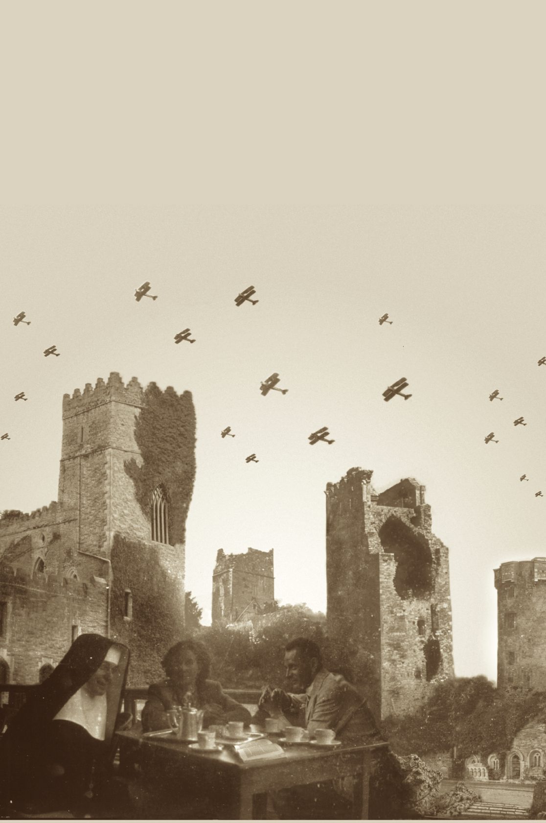 Several large mural prints that used early 20th century tourist photographs of Ireland, found in the George Lucas Film Research Library in California. Composite landscaped provided a backdrop for the visits of Egon Schiele to Ireland where is seen looking at Sheela-na-Gigs sculptures, purchasing them at a market, and mimicking their postures in the National Museum (where they were actually not put on display until the late 20th century).
