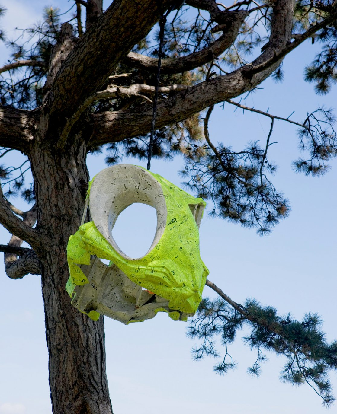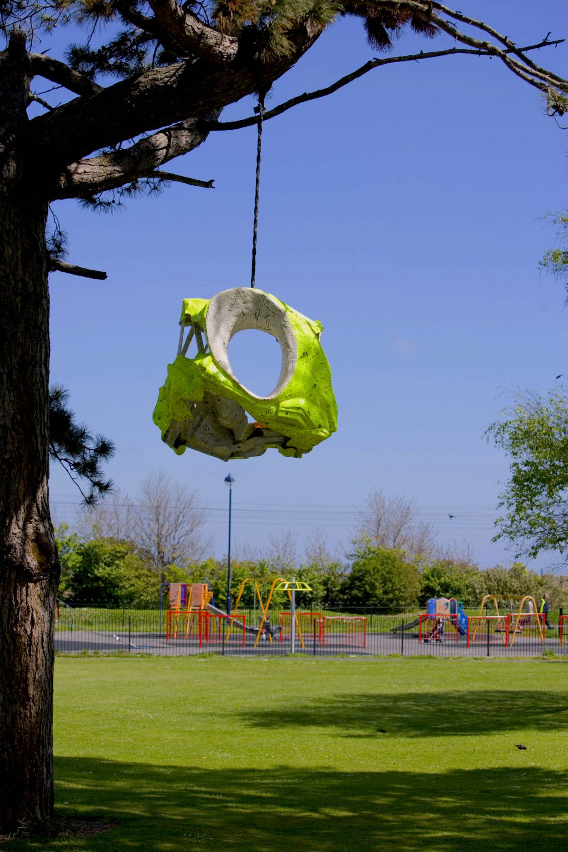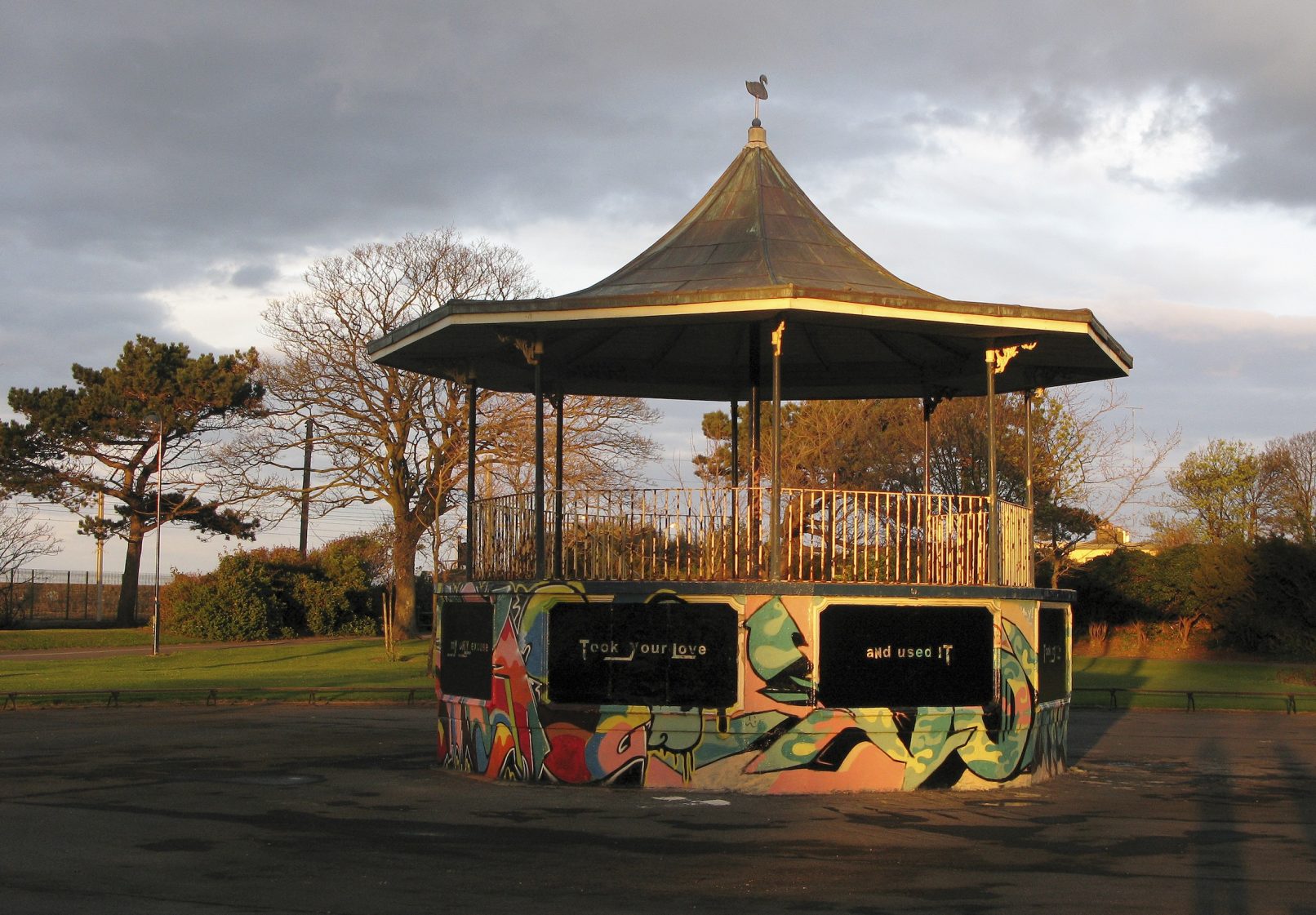 Alan Phelan’s three artworks make a connection between the social and musical history of Blackrock Park and the bird wildlife. The two papier-mâché sculptures and graphics with graffiti on the bandstand take as their starting point the Thin Lizzy free gig in the park in 1971. In referencing this gig, Alan creates a link to the past by re-introducing shared moments from the past into the present and perhaps re-establishes a musical legacy for the park among a new generation of park users. Research plays a fundamental role in Alan’s practice, supporting his interest in the narrative potential surrounding an artwork. The aesthetic of these three artworks, Lizzy Feeder, Bald Finch and Thin Lyrics reference the styles and phenomena associated with the park in its transitional state. The ideas implicit in the works are humorous, nostalgic and critically engaged.
