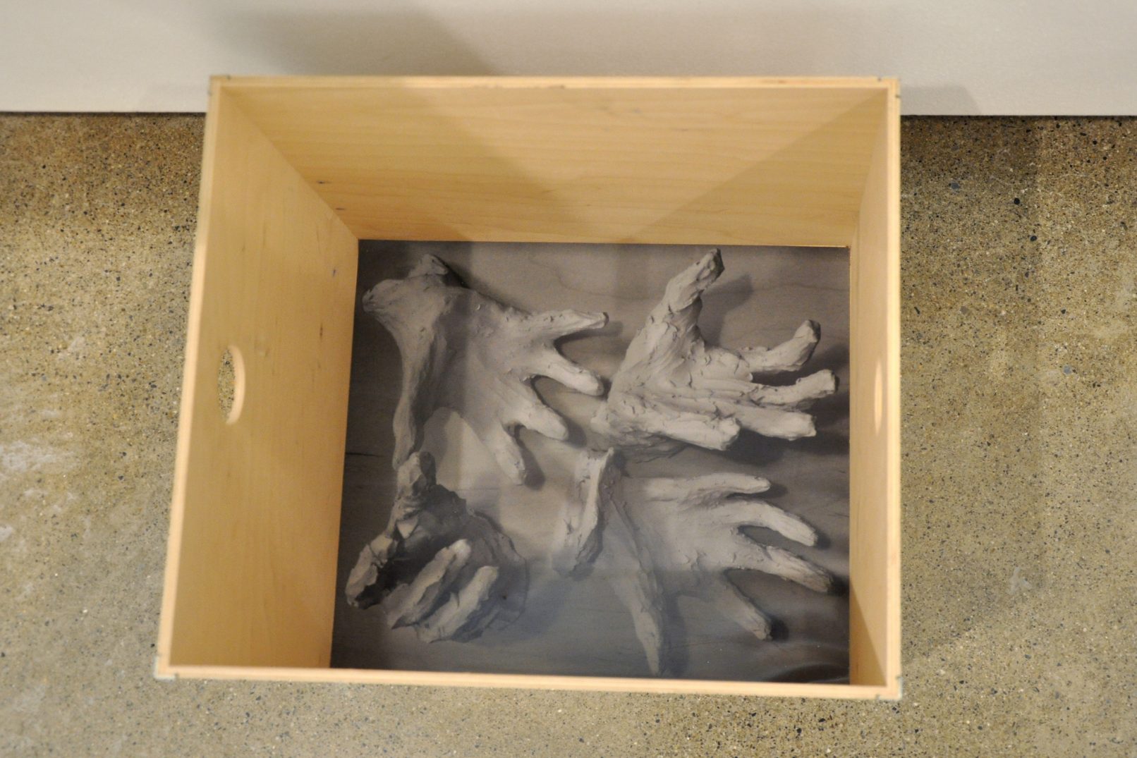 HANDJOB began as a convalescence activity after a broken thumb, not some onanistic occupational therapy but something else entirely. Like many minor personal moments in the life of an artist it has now morphed into a more public presentation. For several months last year Phelan posted and re-blogged endless photos of hands on social media. These accumulated and formed the broad basis of a project inspired in part, it should be noted, by a trend amongst self-harming Tumblr kids who fixate on monochrome hand photos.