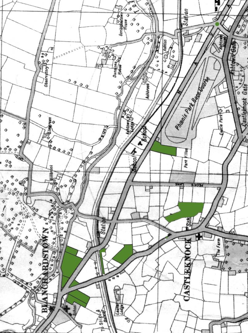 4. Green plots – places where I played as a kid – clockwise from the bottom right – home, neighbours, GAA, school, canal bank