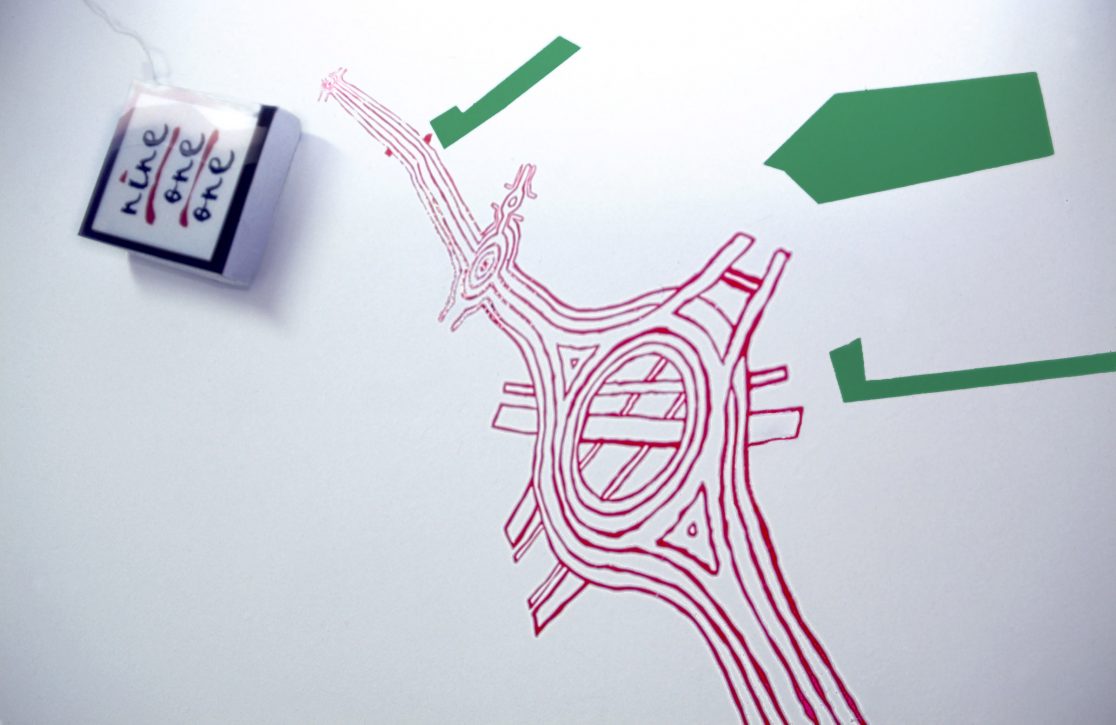 The work surveyed the development in West Dublin where Phelan grew up, presenting a mixed media map reflecting the changing cultural and physical infrastructure. The piece combined a variety of references detailed below: