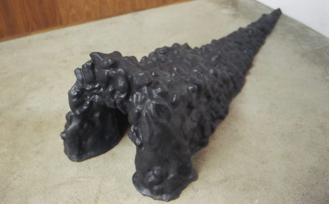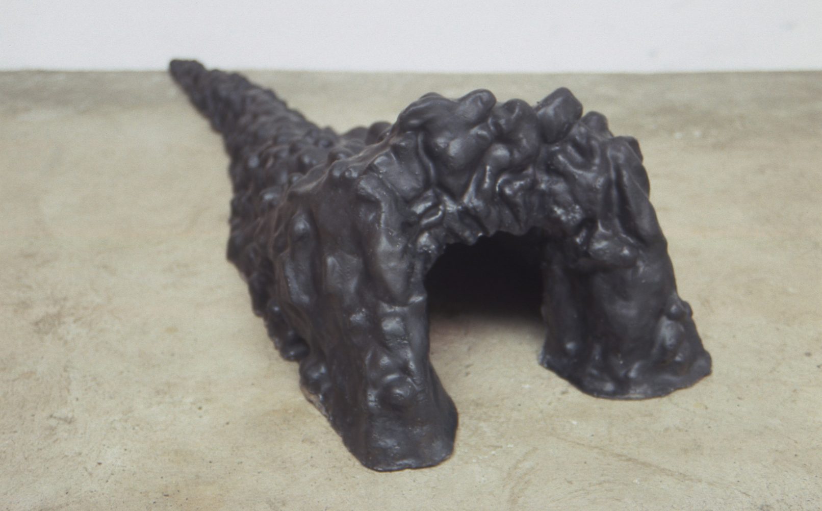 It is if Apollinaire has found himself, unexpectedly, in the recreational quarters of Odo the shape-shifter from a particularly tangential TV episode of Deep Space Nine. Unlikely, yes, but no more so than the formal, spatial and temporal shifts of meaning that occur in Alan Phelan’s installation Ralph, Eamon, Odo, Barbara, at mother’s tankstation. Wherein Phelan synthesises Aristotolean acceptance of the ‘given’ with a Platonic readiness to hypothesize a different reality, a different realm. In simpler terms, Phelan simultaneously employs and subverts the ‘it does what it says on the tin’ approach to the world. Whilst Phelan’s individual sculptures accord to expected taxonomic systems of naming (i.e. Barbara refers to Barabra Hepworth, Eamon stands for Eamon DeValera, Odo is the above mentioned slippery customer, ‘Odo’ – who only ever really manages approximate copies of things, and Ralph equals Ralph Gifford – who? – we will come back to him) and apply appropriate expected meaning, they also employ radical shifts of lateral logic.