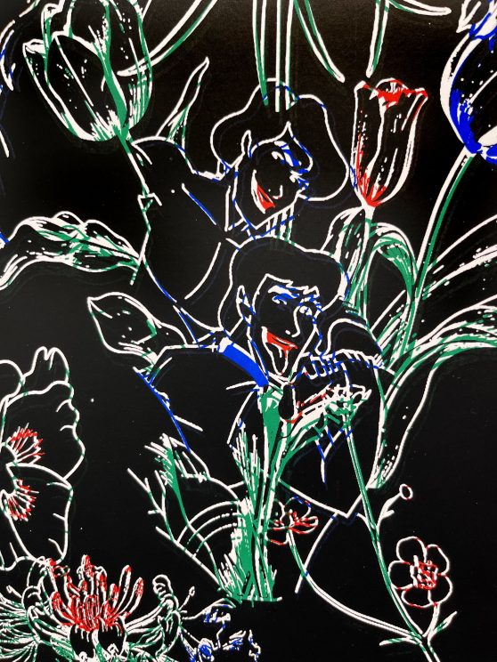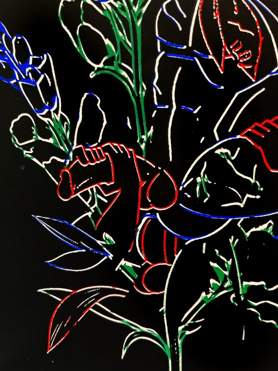 There are a few twists in this narrative which brings the personal into the public discourse. Where the Joly, Thames, Paget, Krayn and Omnicore failed, the Autochrome succeeded. The Lumière brothers, Auguste and Louis, won this early stage of colour photography. Fighting back for Joly, Phelan has cosplayed the brothers in three portraits with his husband. This queering of history is scattered throughout the exhibition from a large colour screen printed painting which expands the backstory to his RGB Sconce sculpture and critical commentaries on commodity culture via a ‘bespoke’ handbag and ‘custom’ tote. Two zines made for the recent Paris Ass Book Fair at the Palais de Tokyo Paris will also be available.